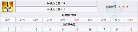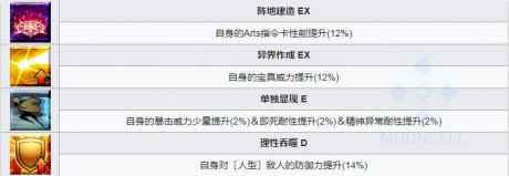 付与自身毅力状态(1次・5回合),弱化状态解除,付与每回合HP回复状态(3回合),宝具威力提升(3回合)