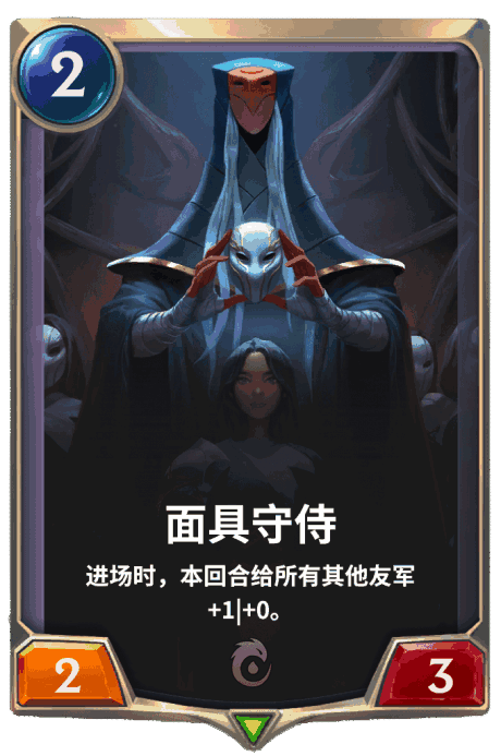 lor中,面具守侍是艾欧尼亚的单位卡,属于普通绿卡,那么游戏中面具守侍效果如何,属性如何,下面一起来看看吧。