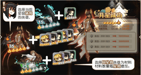 而达到必要的星级上限后,需要进行“进化”来进行星级提升。目前卡牌上限为六星封顶。而升星需要消耗同星卡牌才可以。