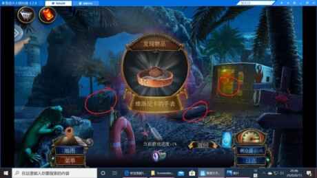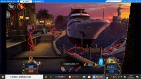 7、海滩,冲到岸边的垃圾,手电照明,寻物,注意箱子上的一个摇杆,安在铁笼上,其他简单(原谅糟糕的截屏,那个摇杆死活再找不到了,没标记出来)。得到大奖章项链。查看大奖章项链。