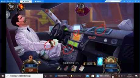 38、马路边的车,用铁杆撬开车门,寻物:骷髅底下拿剪刀,剪塑料袋……,急救包拉开,找到溶液、清洁液;清洁液喷抽屉上的污迹,找到骷髅头,……;其余比较简单。最后找到液态酸。
