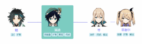 除了岩和草,温迪能和一切元素搭配,我就推荐一个风元素队伍吧,标准3巨头加无CD挂雷。PS:风主的大招能和温迪叠加使用吗?可以的话把皇女换了!