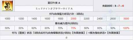 付与自身毅力状态(1次・3回合),暴击威力提升(3回合),付与〔熬夜〕状态「3回合后付与自身晕眩状态(1回合)【负面效果】」<视为强化状态>【负面效果】
