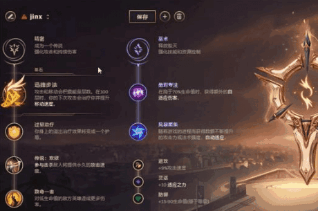 这个天赋可以大幅度增加攻速,配上被金克丝的被动,可以带来不错的效果!在前期对拼的时候,带上这个天赋,对面的ADC根本A不过你。