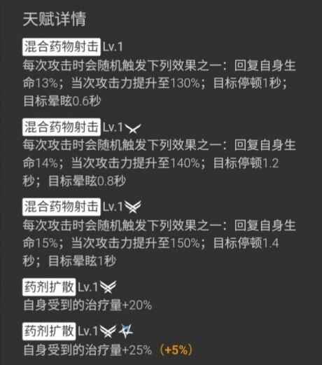 阿的二技能提供高额的抗性加成,一般给重装或者近卫收益比较大,在携带二技能时,阿定位为主职拐副输出,在兵线压力不大时提前开启技能可以为重装提供相当客观的坦度并且负面效果能降到最低,而对于受击回复的技能,阿的多段伤害甚至是一种增益。