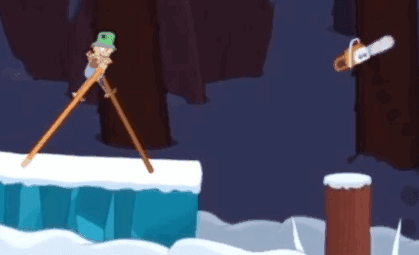 这关一开始就会在冰块上遭到雪人的撞击,大家分开腿尽量保持平衡就可以了。