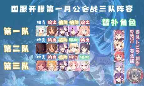 攻略建议,看过人物的解读和评价观看,所以文章都仅仅只会用一次全名表达,其余皆用外号,从现在就要开始习惯外号表达,并且以下攻略阵容皆按照台服的公会战时间及当季人物决定,建议勿喷。