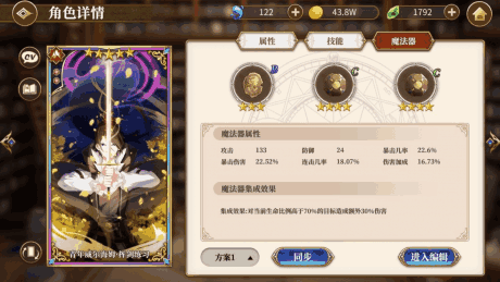 心之器选择:优先堆满暴击然后攻击、吸血、无视防御、暴击伤害、造成伤害、怒气增加率,心之器这类很多三星也是能用的,这里就不贴了。