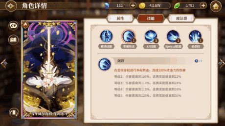 强烈建议点满,释放需要三格能量,击杀敌人一次再对剩余敌人再追加一次斩击,最多追加两次。评价:剑鬼灵魂技能,需要了解敌方属性血量和自身输出才能发挥其威力,配合被动砍出三刀伤害爆炸。周回活动本竞技场最佳MVP技能,在试炼最后几关敌方血量太高的情况下有点吃力。