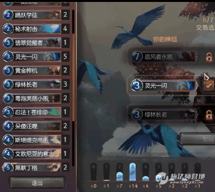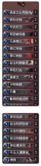 德莱厄斯,人称小野爪头目,升级简单,伤害爆炸。两个德莱厄斯牌堆给的牌都很好,高攻生物和击晕特效都契合德莱厄斯的抢血思路。拿不到诺克萨斯纯色卡组和扰乱敌军 亚索也没关系,补伤害,补质量,干就完了。两个卡莉丝塔牌堆都有受诅守侍、饥肠屠户、黑色长矛和彼岸一瞥,英雄自身质量略低但也和暗影岛前期压制场面的思路高度契合。恶之惩戒 卢锡安对应的德玛西亚牌堆里有赛娜。艾尼维亚本身质量都很高但开悟之明牌堆不太好。坚持不懈 盖伦失去了效忠卡先锋旗手的梦想和逮捕,比T1的德玛精兵 盖伦略差,后续多选德玛西亚的高质量卡牌即可。护盾之墙 慎辅助任何进攻型英雄和挑战者随从都是很强的保护,有菲奥娜或盖伦作为队友时效果更强大。