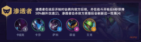 渗透者在最开始的6秒会获得50%的攻速(2),击杀后刷新(4)