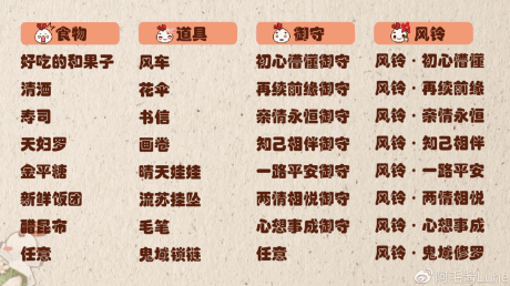 「缘结历练风铃墙」道具特殊组合列表一览,共有八段剧情等待触发!