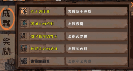 游戏中成就种类多样,大体可以分为怪物类、天赋类、装备类、休闲类以及无尽模式的成就。