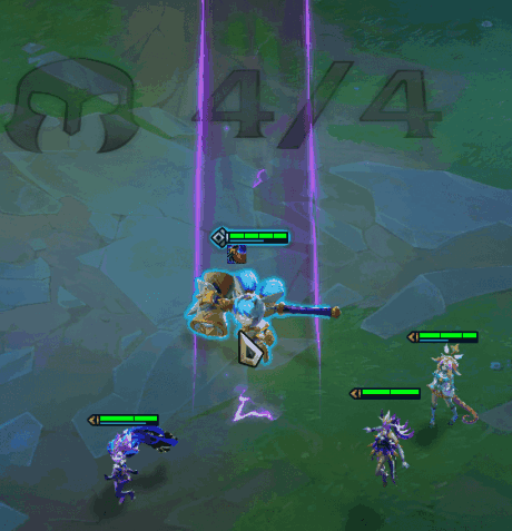○ 战斗开始时,向前射出一道光线,使得所有被击中的敌人最大法力值提高40%,直到他们施放一次技能。