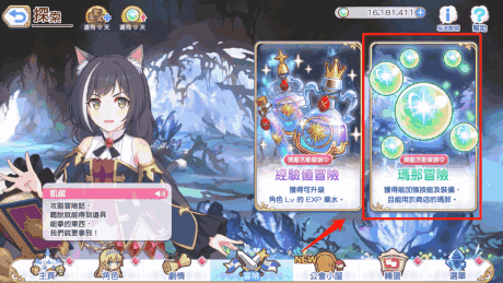 1、挑战方法:点击底部菜单的冒险点击“探索”,然后找到“玛那冒险”点击即可进行挑战,玛那冒险可以不消耗体力进行挑战。