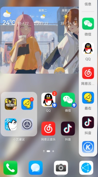 1、首先在屏幕的左侧、右侧滑动并长按打开侧边栏;