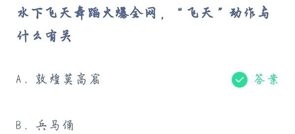 河南广播电视台端午奇妙游的第一个节目《祈》,凭借其水下绝美的飞天舞蹈火爆全网,让很多舞者竞相模仿。今天蚂蚁庄园小课堂就是问大家,“飞天”动作与什么有关?一起来看看答案和相关介绍吧。