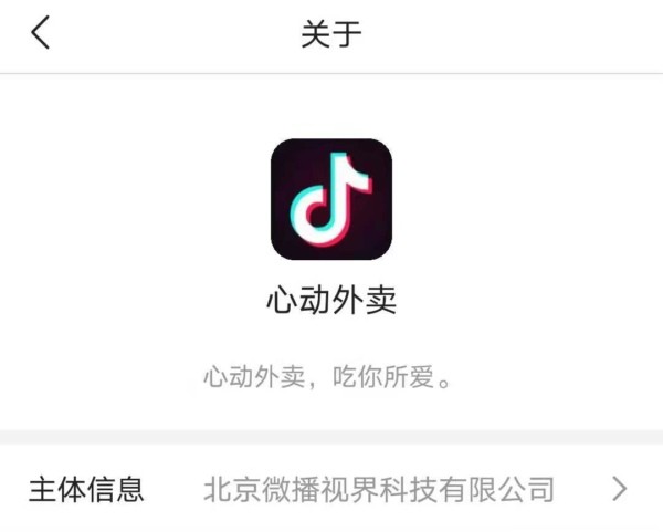其实很简单一共有一下几步,可以看到心动外卖的主体信息就是抖音APP的主体,据悉这个将会作为抖音的一个新功能来开启,而并不会再次推出一个新的APP。