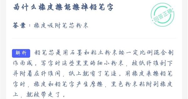 相信很多人小时候都使用过铅笔,在学习生活中,铅笔和橡皮擦是一对形影不离的好搭档,但是铅笔字太容易被擦掉了,所以长大后基本都不会使用铅笔写字。那么你知道为什么橡皮擦能擦掉铅笔字吗?一起来看看答案吧。