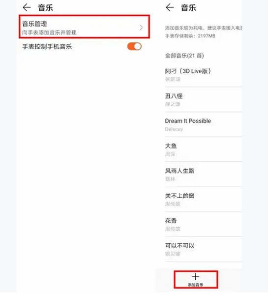 用户们需要现在手表中进行添加离线音乐,因为手表并不支持在线搜歌,也不支持外放,所以在听歌前需要先将歌曲下载到本地,然后佩戴蓝牙耳机进行播放。以下是歌曲添加的详细步骤: