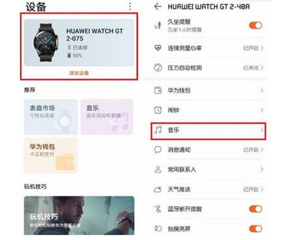 1、首先需要将自己的手表升级成2.0.0.136及以上版本,然后在手机的运动与健康app中找到完成连接的设备进入,选择音乐功能。