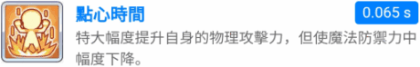 PS:装备专武后点心时间→点心时间+:特大幅度提升自己的物理攻击力,并特大幅度提升自己的物理暴击,但使自己的魔法防御力中幅度下降。