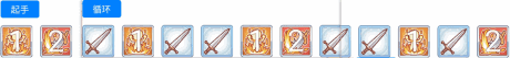 起手:EX技能→ 1 技能→ 2 技能→循环:平A→ 1 技能→平A→ 平A→ 1 技能→ 2 技能→平A→ 平A→ 1 技能→ 平A→ 2 技能。