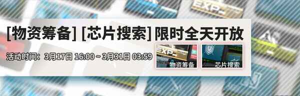 活动说明:活动期间内“物资筹备”以及“芯片搜索”的所有关卡将进行全天开放