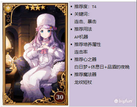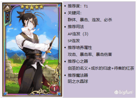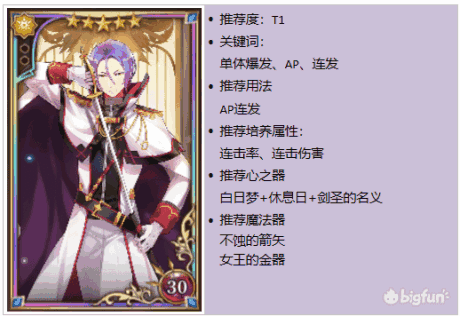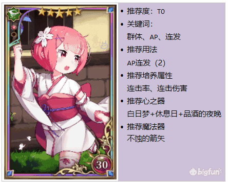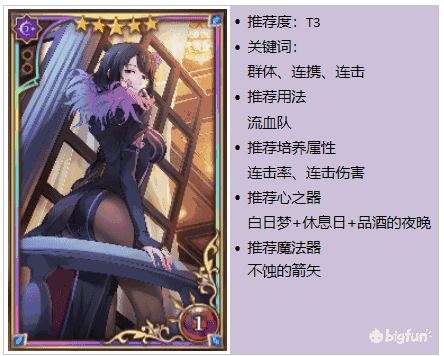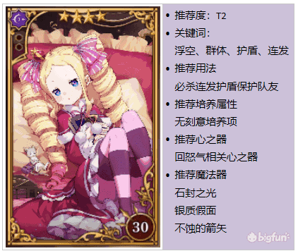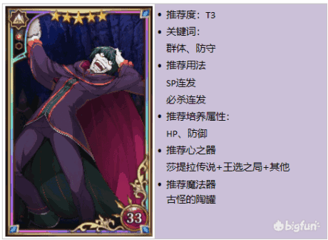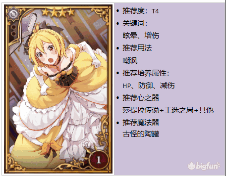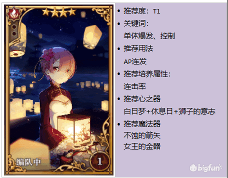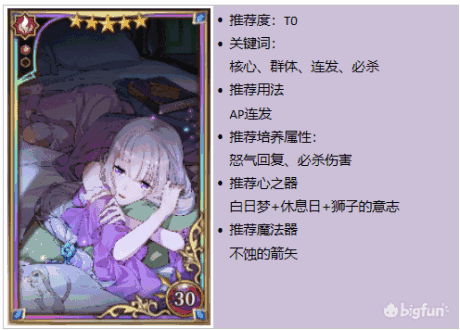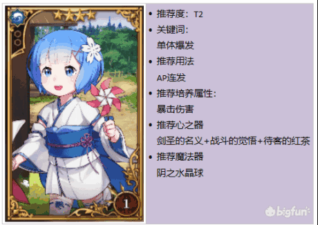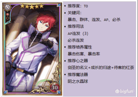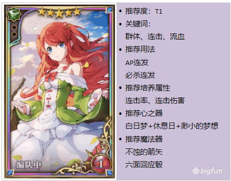 T0,最强力的角色,后期在周回本和挑战本中都有亮眼的发挥。