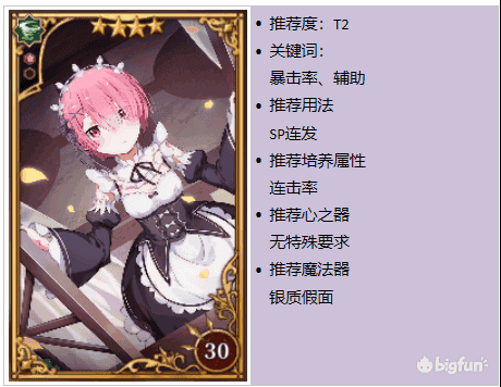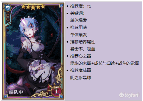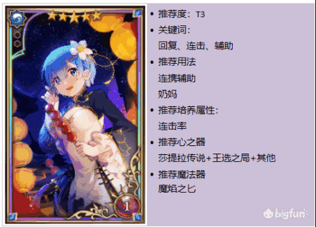 尽管SP有分摊伤害这种不错的效果,但是五星雷姆的回复量并不高。要知道放在后期,我方一个技能经常大几万的伤害,带个回血的心之器就能将血量从残血拉满。