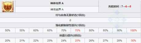 付与自身无敌状态(1回合),强化解除耐性提升(1回合),防御力提升(3回合)