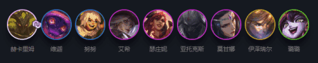 英雄:赫卡里姆、维迦、努努、艾希、瑟庄妮、亚托克斯、莫甘娜、伊泽瑞尔、璐璐