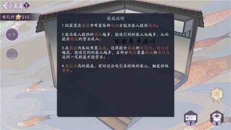 客人们可以在商店街建造町屋,按照喜好配置箱庭,通过装扮箱庭提升商店的吸引力,会吸引更多客人来光顾哦!不过,箱庭内也需要有足够的商品,才能产生可观的收益~