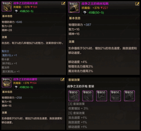 防具的选择:战争之王三件套+神器散件。
