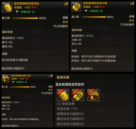 8%的攻击伤害,5%的附加伤害,属强三速等的提升称它为史诗下第一也不为过。同样的,通过通关“悲鸣洞穴”远古副本来获得材料,进行兑换和后续的升级装备。强有力的属性加成让它成为不可替代的首饰首选!