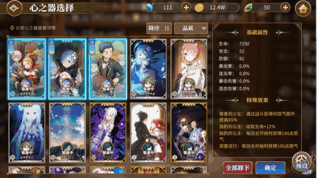 主要思路就是通过凑回怒装备使旗袍蕾姆能全程保持大招的Debuff,旗袍蕾姆的必杀技特效是使怪物所受的连击伤害变成2倍,普通大招持续2回合,满怒大招持续3回合,一般的三件回怒心之器保持两个回合释放一次普通大招并不难,通过突破心之器达到每三个回合释放一次满怒大招也不难(活动送满破心之器,我刷了活动的心之器,另一个心之器只突破了一层,现在只要被攻击一两次就能够,但是偶尔会有一两次缺一丝怒气放不出来)。