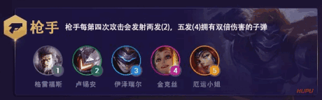 每4次攻击,枪手都会有2次(2),5次(4)造成双倍伤害的额外攻击