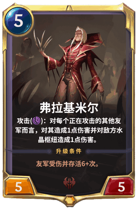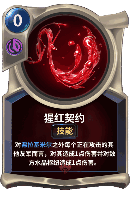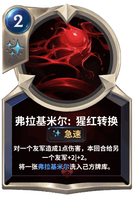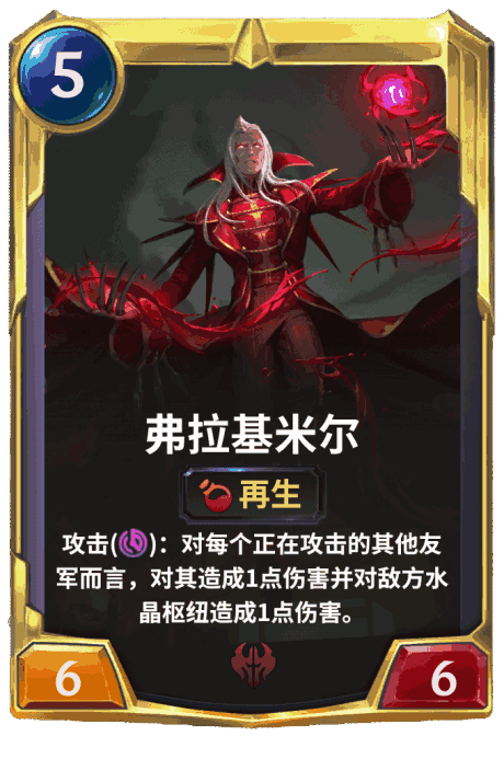 效果:再生 攻击(技能):对每个正在攻击的其他友军而言,对其造成1点伤害并对敌方水晶枢纽造成1点伤害。