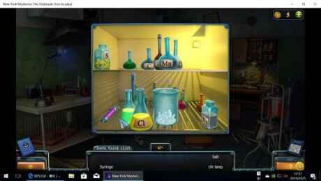 51、绿色的门——黄钥匙打开锁——寻物,显微镜找26号元素Fe;冰箱找Cl+Na=NaCl;绿色烧瓶移开后找到注射器,……得紫光灯泡。