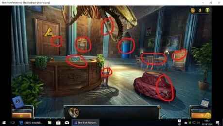 39、右档案柜——拿雨伞——大厅——恐龙标本,用雨伞钩到钥匙3、尖牙——尖牙割红色沙发的补丁——图纸1、棉球。