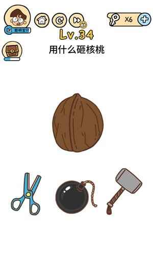 脑洞大大大是一款多个关卡的有趣的休闲益智手游,那么其中第34关用什么砸核桃答案是什么下面一起来看看吧。