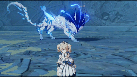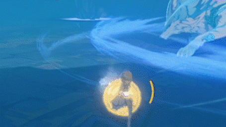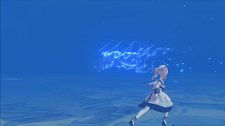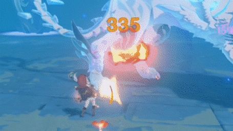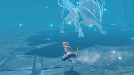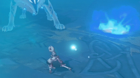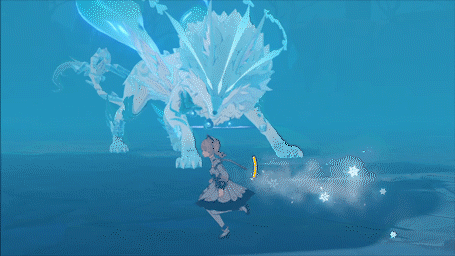 如果距离Boss较远(安柏233),则会在玩家角色脚下生成冰霜地面,在大约一秒钟后,Boss会跃至冰环所在位置施放回旋攻击。