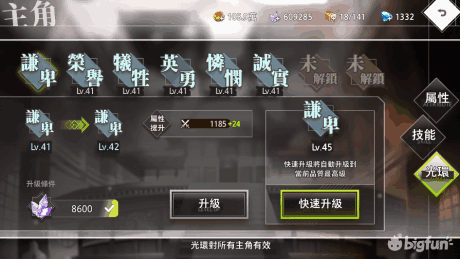 主角光环三种形态通用,按等级升满即可。