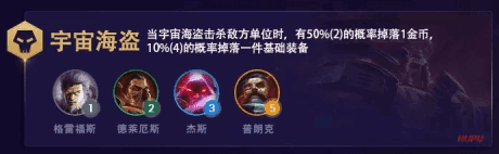 LOL云顶之弈宇宙海盗羁绊效果是第3赛季银河战争最新种族羁绊,多位宇宙海盗英雄将有羁绊加成效果喔,那么云顶之弈宇宙海盗羁绊效果是什么、英雄联盟云顶之弈宇宙海盗种族羁绊buff效果属性呢,大西洋软件园为大家带来了介绍。