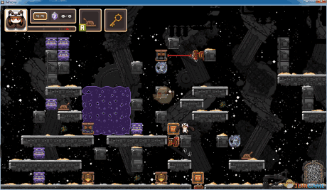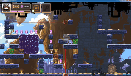 开启开关,让落下的飞行器挡住激光,收集拼图碎片和宝石。