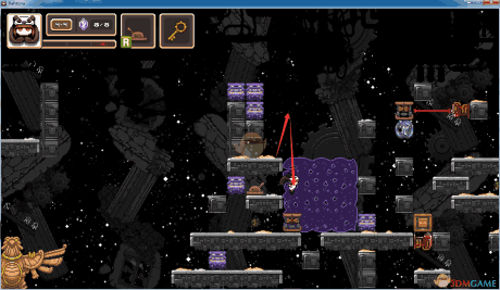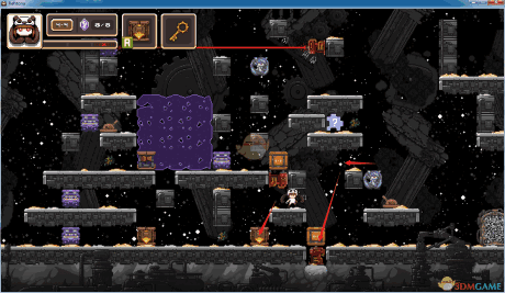 向左走开启机关收回飞行器,用同样的方法进入最下边一行,向左走离开重力区域,通关。