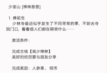 完成主线【嵩少禅林】 美好的经历要与朋友分享