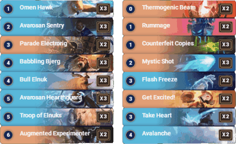 主要通过赝品,次要通过电动彩车复制厄努克类别的随从到牌库中后,从手牌打出厄努克群铺场给。套牌依赖抽到厄努克,打快攻手里有厄努克群时尽量复制蛮牛厄努克,打慢速套牌尽量复制厄努克群。凡事没绝对,有些时候可以复制阿瓦罗萨炉卫用身材碾过去。