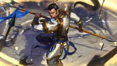 0.5秒引导后,赵信对前方的锥形区域进行快速斩击,造成30/40/50/60/70(+0.3AD)物理伤害,随后使用长枪对前方直线突刺,造成30/65/100/135/170(+0.75AD)。所有被突刺击中的敌人都将被减速50%,持续1.5秒。