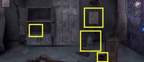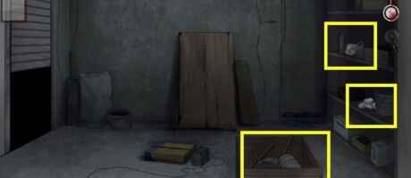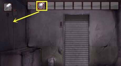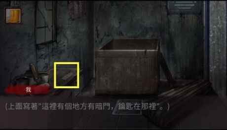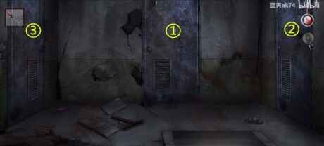 在椅子上获得【黑色胶带】,桶里获得【小容器】,读取墙上的说明